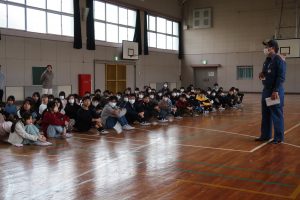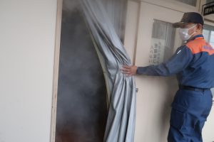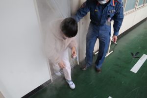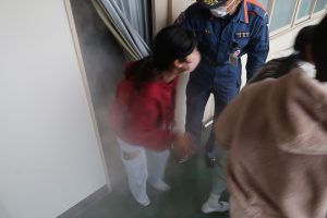 全校児童が3分4秒で安全に避難することができました。6年生は避難訓練後に体育館に集まり、煙道体験を行いました。真っ白な煙が部屋中に立ちこめ、視界がゼロ・・・。息苦しさもさることながら、火災時にはきっとパニックになってしまうのではないかと感じました。