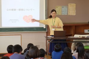 11月28日、5年生を対象に学校保健委員会を実施しました。今回は、昨年度まで本校の相談員としてご尽力いただいた柿田淑子先生を講師にお迎えし、「心の健康」を保つために大切なかかわり方についてお話しいただきました。