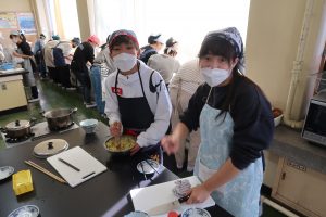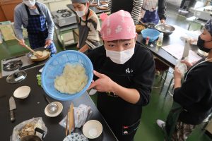 「主食」・「主菜」・「副菜」のそろった一食分の献立を、自分たちで栄養のバランスを考えながら立て、それぞれが工夫を生かした料理づくりに取り組みました。