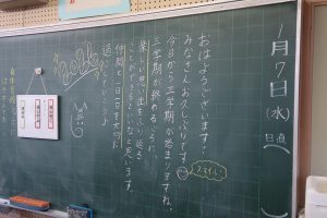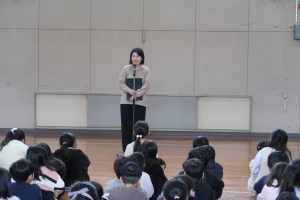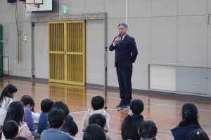 校長先生からは、「3学期は一年のまとめの学期であること」「次の学年へ向けて、一日一日を大切にしながら頑張っていこう」というお話がありました。子どもたちは、うなずきながら真剣に耳を傾けていました。