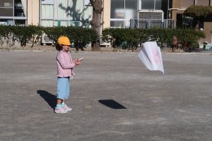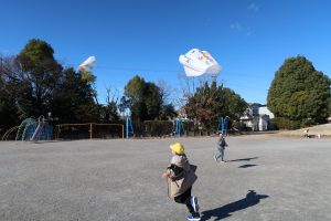 1年生が運動場で凧揚げをしました。今日はほどよく風が吹き、子どもたちは上手に凧を空高く飛ばしていました。中には、30メートルのたこ糸がすべて出るほど高く揚げることができた子もおり、歓声があがる場面も見られました。冬の風を感じながら、笑顔いっぱいで活動する1年生の姿が印象的でした。