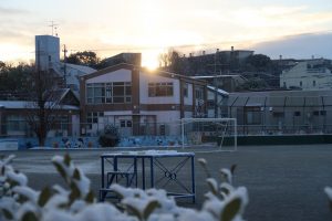 昨日に引き続き、冷え込みの厳しい一日となりました。昨晩からはちらほらと雪が舞い、今朝は校庭にうっすらと積雪が見られました。冬ならではの美しい風景に、子どもたちも季節の移ろいを感じてくれるのではないかと思います。