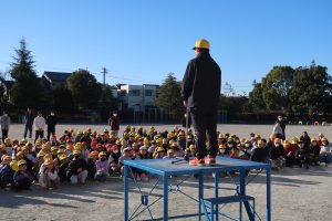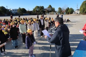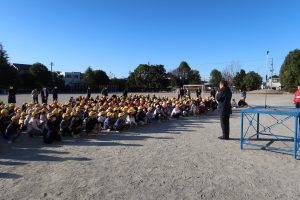 本日、学校集会を行いました。寒い一日ではありましたが、空気の澄んだ、すっきりとした良い天気の中での集会となりました。