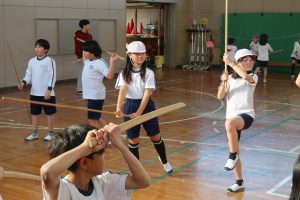 昨日、4年生を対象に「棒の手」の学習を行いました。棒の手は、この地域に古くから伝わる無形民俗文化財であり、県内には45の流派が存在し、市内にはそのうち5つの流派が今も受け継がれています。今回は、205年の歴史をもつ「直師夢想東軍流」の皆様をお招きし、貴重なお話と実演をご披露いただきました。