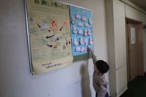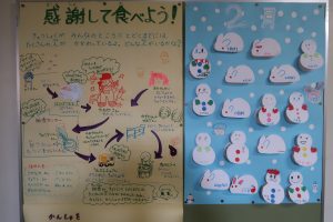 配膳室の横には、給食委員会が毎月工夫を凝らして作ってくれる掲示板があります。