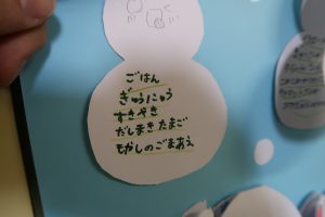 実はその雪だるま、裏に“今日の給食メニュー”が書いてあるのです。