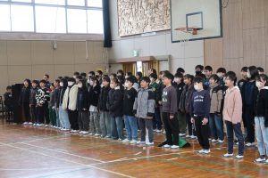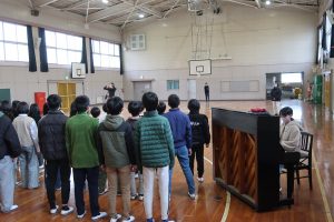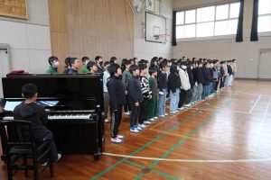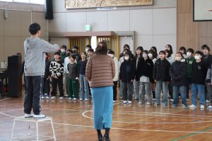 6時間目、体育館から歌声が聞こえてきました。6年生が、卒業式で歌う「正解」「あなたへ」の合唱練習をしていました。