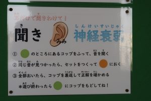 今回は、耳の働きにちなんだ“聞き神経衰弱”に挑戦できます。机の上に置かれた紙コップの音をよく聞き、同じ音を見つけていくという、聴く力を使ったユニークな取り組みです。楽しみながら、音の違いや耳の大切さについて学ぶことができます。