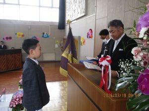 式では、校長先生より卒業生一人一人に卒業証書が手渡されました。その姿を見ながら、この6年間の積み重ねを思い返し、胸が熱くなる思いでした。卒業証書は、瑞鳳小学校で過ごした日々の証であり、仲間とともに学び、挑戦し、乗り越えてきた成長の証です。体の成長はもちろんのこと、心の面でも大きくたくましくなったことを強く感じました。
