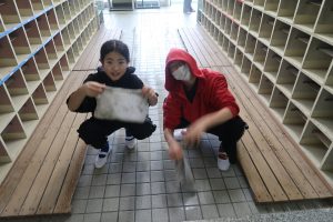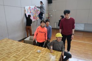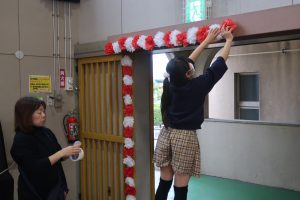 新6年生が、朝早くから校内の清掃や会場の設営に取り組みました。昇降口の水拭きまで丁寧に行う姿からは、新入生を迎える気持ちが感じられました。