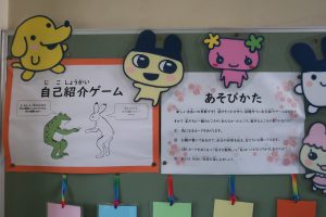 保健室前と西階段の掲示板が新しくなりました。4月らしく、楽しい「自己紹介ゲーム」が登場しています。カードをめくり、お題に答えた後は、友達にも聞いてみる――そんなやりとりが自然と生まれる工夫がされています。