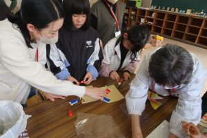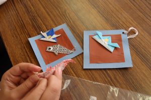 3年生の児童がやさしく声をかけながら関わる姿も見られ、自然な交流が生まれていました。いつもの紙ヒコーキづくりに加え、今回は季節に合わせた「こいのぼり」のペーパークラフトにも取り組み、楽しそうな笑顔が広がっていました。