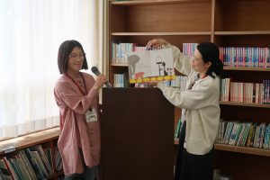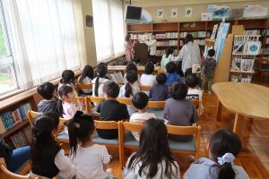 読み聞かせの後には、お楽しみの「しおり」のプレゼントもあり、子どもたちはうれしそうに手に取っていました。短い時間ではありましたが、本の楽しさにふれることができる、心温まるひとときとなりました。
