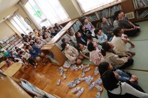 今日は、20分放課に図書ボランティアの皆さんによる「読み聞かせ」がありました。ブックワールドには、1年生を中心にたくさんの子どもたちが集まり、あっという間に満員となりました。